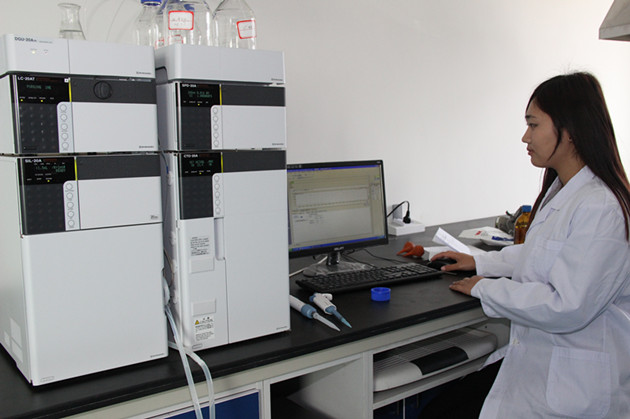 ???五洲豐公司檢驗人員在做成品樣品含量檢測