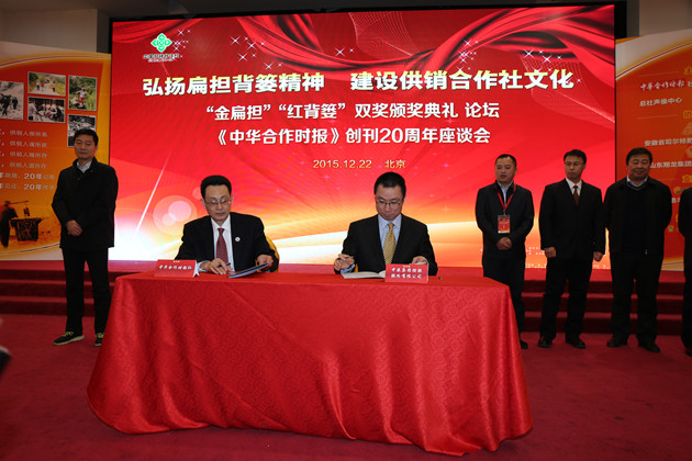 ? ? 12月22日,以“弘揚(yáng)扁擔(dān)背簍精神、建設(shè)供銷合作社文化”為主題的供銷合作社文化建設(shè)論壇暨《中華合作時(shí)報(bào)》創(chuàng)刊20周年座談會(huì)在京舉行。會(huì)議期間,中農(nóng)控股總經(jīng)理羅德強(qiáng)與中華合作時(shí)報(bào)社社長(zhǎng)、總編輯查迎新現(xiàn)場(chǎng)簽訂戰(zhàn)略合作協(xié)議。