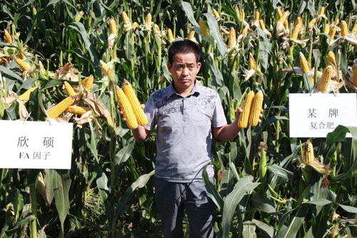 ? ? 安國玉現(xiàn)場介紹,今年遇到了干旱天氣,非常擔(dān)心示范田玉米的產(chǎn)量,在新樂中農(nóng)農(nóng)化人員的精心指導(dǎo)下,加強(qiáng)田間管理,合理使用“欣碩”FA因子復(fù)合肥,玉米長勢很快就超過了其他地塊。安國玉還給大家算了一筆自己的經(jīng)濟(jì)賬,使用“欣碩”FA因子肥料雖然比普通肥料貴一些,但是玉米高產(chǎn)增收了,就把肥料上多花的錢全都掙回來了,大品牌好肥料用著就是放心!遇上干旱心里也不慌了。