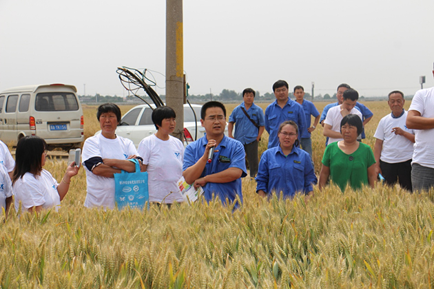 ? ? 與會(huì)人員首先來到新樂中農(nóng)農(nóng)業(yè)技術(shù)推廣示范點(diǎn),觀摩了小麥?zhǔn)┯谩靶来T”FA因子功能肥料情況。隨后,新樂中農(nóng)召開了新肥料示范推廣現(xiàn)場(chǎng)培訓(xùn)會(huì),介紹了“欣碩”FA因子功能肥料的功效及施用方法,重點(diǎn)推介了“欣碩”FA因子功能型肥料促進(jìn)根系生長(zhǎng),增加作物的抗逆性能、抗寒力、抗干熱風(fēng)以及抗病蟲害等多方面的突出功效。河北省農(nóng)科院小麥專家楊立華說:“今年全國(guó)的小麥赤霉病比較嚴(yán)重,而施用FA因子肥料的小麥,幾乎沒有赤霉病,這說明FA肥料有很好的抗病效果,這也為高產(chǎn)打下了基礎(chǔ),也是增產(chǎn)的保證。”觀摩會(huì)現(xiàn)場(chǎng),使用“欣碩”FA因子功能型肥料的種植戶向前來觀摩的參會(huì)人員講述了施用“欣碩”FA因子功能肥料過程中的注意事項(xiàng),分享了種植管理過程中的施肥經(jīng)驗(yàn)。期間,大家互動(dòng)頻繁,氣氛熱烈,顯示出對(duì)新樂中農(nóng)技術(shù)與產(chǎn)品的極大認(rèn)可。