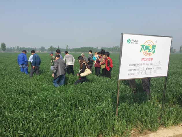 ? ? 4月24-25日,由中農(nóng)集團控股股份有限公司(以下簡稱中農(nóng)控股)和德州市德城區(qū)佳運多棉花種植技術(shù)服務(wù)專業(yè)合作社聯(lián)合主辦的政府有機肥補貼項目試驗田現(xiàn)場觀摩會暨有機肥及低殘留農(nóng)藥推廣項目分別在山東省德州市臨邑縣林子鎮(zhèn)窯廠村和畢家村召開。中農(nóng)控股特聘農(nóng)化專家、原北京市農(nóng)林科學(xué)院植物營養(yǎng)與資源研究所副所長吳玉光、高級農(nóng)藝師閆保福與中農(nóng)控股農(nóng)化服務(wù)人員一道深入田間地頭,為農(nóng)民展示有機肥改良土壤效果并解決種植小麥生產(chǎn)中遇到的問題,向農(nóng)民傳授提高肥料利用率及有關(guān)土壤改良的具體方案,為期兩天的小麥觀摩會吸引了當(dāng)?shù)剞r(nóng)民近100人。