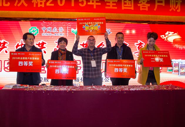 ? ? 在各位代表發(fā)言之后,會議還評選出中農(nóng)沃裕系列產(chǎn)品的年度銷售狀元、最佳合作客戶、最佳成長客戶、最佳推廣客戶和最佳新客戶,對全國廣大經(jīng)銷商一年來的辛勤努力給予了充分肯定。在砸金蛋和抽獎環(huán)節(jié)中,參會的300多位核心經(jīng)銷商踴躍參與,將會議氣氛推向高潮。
