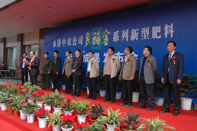 ? ? ?4月18日,永濟(jì)中農(nóng)化工有限公司(簡(jiǎn)稱“永濟(jì)中農(nóng)”)在其公司本部隆重召開(kāi)“多酶金系列新型肥料質(zhì)量成果發(fā)布會(huì)”。永濟(jì)市委副書(shū)記、市長(zhǎng)朱曉東、永濟(jì)市人大主任楊文寧、永濟(jì)市政協(xié)主席袁宏軒,以及永濟(jì)市工商、質(zhì)檢、農(nóng)委、經(jīng)信局、土肥站等職能部門(mén)領(lǐng)導(dǎo)受邀出席會(huì)議,來(lái)自全國(guó)30多個(gè)省、市、自治區(qū)的客戶代表和20余家媒體單位參加會(huì)議。??? 發(fā)布會(huì)上,首先由中國(guó)質(zhì)量萬(wàn)里行雜志社社長(zhǎng)汪鶴林的受托代表宣讀了賀信,隨后永濟(jì)中農(nóng)總經(jīng)理劉乃倉(cāng)詳細(xì)介紹了企業(yè)發(fā)展方向和新產(chǎn)品研發(fā)情況。劉乃倉(cāng)在發(fā)言中提到,永濟(jì)中農(nóng)經(jīng)過(guò)近30年的探索,走過(guò)了由原來(lái)的合成氨、碳銨,到生產(chǎn)普通尿素、多肽尿素、多酶金尿素的差異化產(chǎn)品更新之路。特別是目前在國(guó)際肥業(yè)市場(chǎng)占有領(lǐng)先地位的多酶金尿素,為多種肽酶復(fù)合體及高分子有機(jī)聚合物經(jīng)過(guò)螯合而成的含有機(jī)型態(tài)的高能量尿素,是真正實(shí)現(xiàn)了更新和升級(jí)換代的尿素產(chǎn)品,無(wú)論原料的提取配方,還是技術(shù)工藝均居國(guó)內(nèi)領(lǐng)先地位。發(fā)布會(huì)上,中國(guó)質(zhì)量萬(wàn)里行雜志社還授予永濟(jì)中農(nóng)“質(zhì)量信譽(yù)跟蹤單位”榮譽(yù)稱號(hào),山西農(nóng)業(yè)大學(xué)資源環(huán)境學(xué)院院長(zhǎng)洪堅(jiān)平、永濟(jì)市市長(zhǎng)朱曉東為永濟(jì)中農(nóng)產(chǎn)學(xué)研基地揭牌。??? 最后,朱曉東市長(zhǎng)發(fā)表講話。他指出,多酶金系列新型肥的成功研發(fā)投產(chǎn),體現(xiàn)了永濟(jì)中農(nóng)具有抓住經(jīng)濟(jì)結(jié)構(gòu)變化和產(chǎn)業(yè)升級(jí)機(jī)遇的長(zhǎng)遠(yuǎn)戰(zhàn)略眼光,反映出企業(yè)敏銳的市場(chǎng)洞察力和強(qiáng)烈的社會(huì)責(zé)任感,更為永濟(jì)市傳統(tǒng)企業(yè)的轉(zhuǎn)型升級(jí)起到了良好的示范促進(jìn)作用。他代表永濟(jì)市委、市政府向永濟(jì)中農(nóng)全體員工,特別是參與研發(fā)工作的同志們表示衷心的感謝和親切的慰問(wèn)!朱曉東市長(zhǎng)希望永濟(jì)中農(nóng)再接再厲,繼續(xù)加大技術(shù)研發(fā)力度,不斷增強(qiáng)企業(yè)和產(chǎn)品的市場(chǎng)競(jìng)爭(zhēng)力,努力實(shí)現(xiàn)從基礎(chǔ)化工向高端新型化工轉(zhuǎn)變;從生產(chǎn)同質(zhì)化、初級(jí)化產(chǎn)品向差異化、精細(xì)化轉(zhuǎn)變;從粗放型生產(chǎn)向資源節(jié)約型、環(huán)境友好型生產(chǎn)轉(zhuǎn)變,從而在提高核心競(jìng)爭(zhēng)力的同時(shí),不斷推進(jìn)企業(yè)轉(zhuǎn)型升級(jí)。??? 發(fā)布會(huì)結(jié)束后,與會(huì)領(lǐng)導(dǎo)和嘉賓以及經(jīng)銷(xiāo)商代表、新聞媒體記者一同參觀了產(chǎn)品展示廳和新產(chǎn)品生產(chǎn)線。