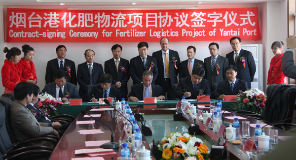 ??? 煙臺港化肥物流項目簽字暨奠基儀式于2010年11月8日在煙臺市舉行,我司作為項目投資方之一應邀出席,朱聯(lián)副總經理及運輸物流部韓紹忠經理代表我司出席了該儀式。出席儀式的還有煙臺市市領導,煙臺海關、邊檢、交通局、港航局等相關單位領導,以及其他投資方代表。??? 煙臺港化肥物流項目是由我公司與煙臺港、運安公司、中海油、嘉禾農資共同投資興建的國內首個專業(yè)級國際化肥物流基地,總投資3.5億元人民幣,項目將依托煙臺港的區(qū)位優(yōu)勢,資源優(yōu)勢和服務優(yōu)勢,發(fā)揮各股東方的合力,打造中國最大的化肥進出口物流平臺;煙臺港化肥物流項目的建設和運營將大幅提高煙臺港進出口化肥的中轉能力,使煙臺港成為國內第一個擁有進出口化肥專業(yè)碼頭的國際化口岸,同時,也將進一步提升我國在國際化肥貿易領域的市場地位,增強我國在國際化肥行業(yè)的影響力,具有顯著的經濟效益和深遠的戰(zhàn)略意義。